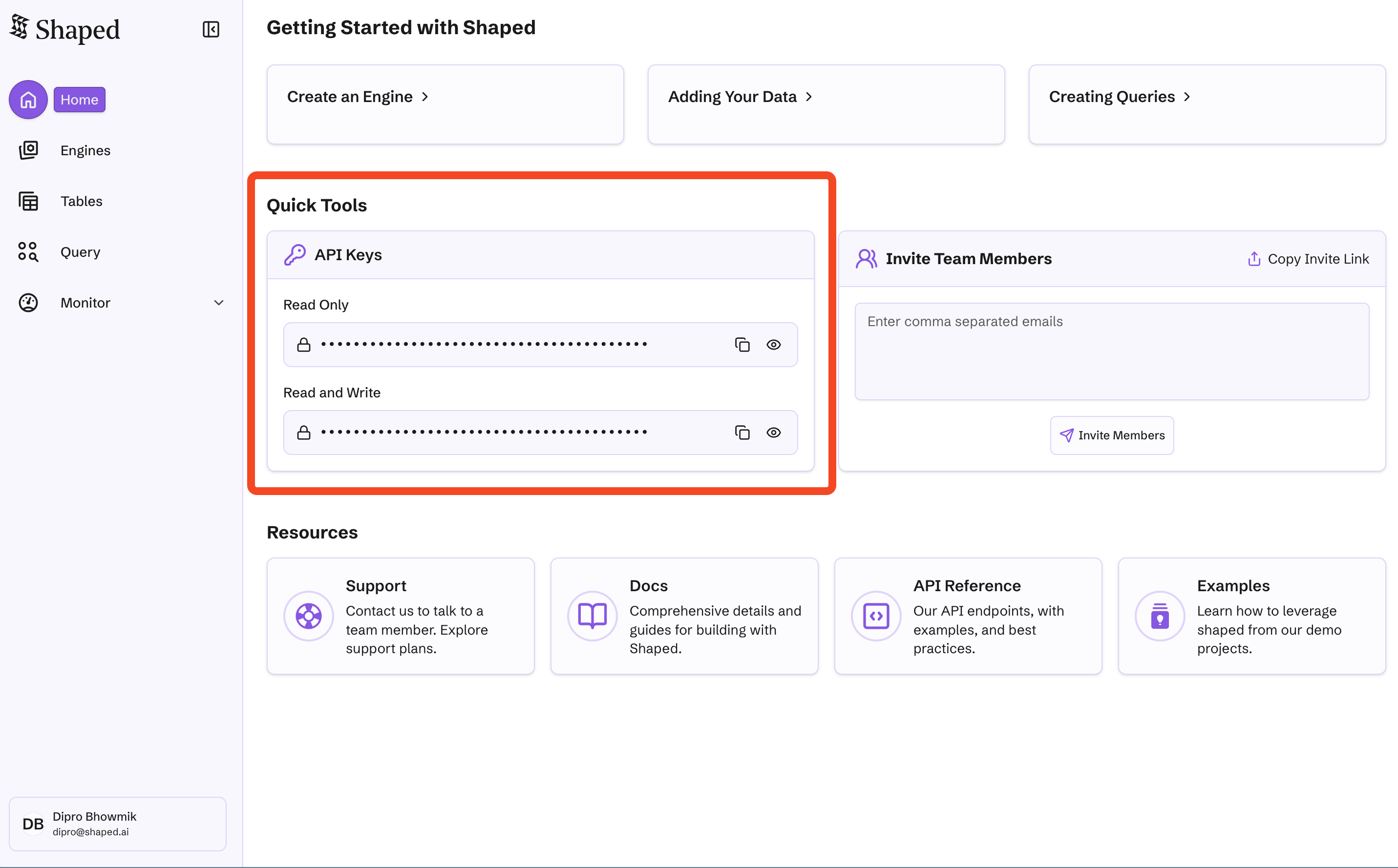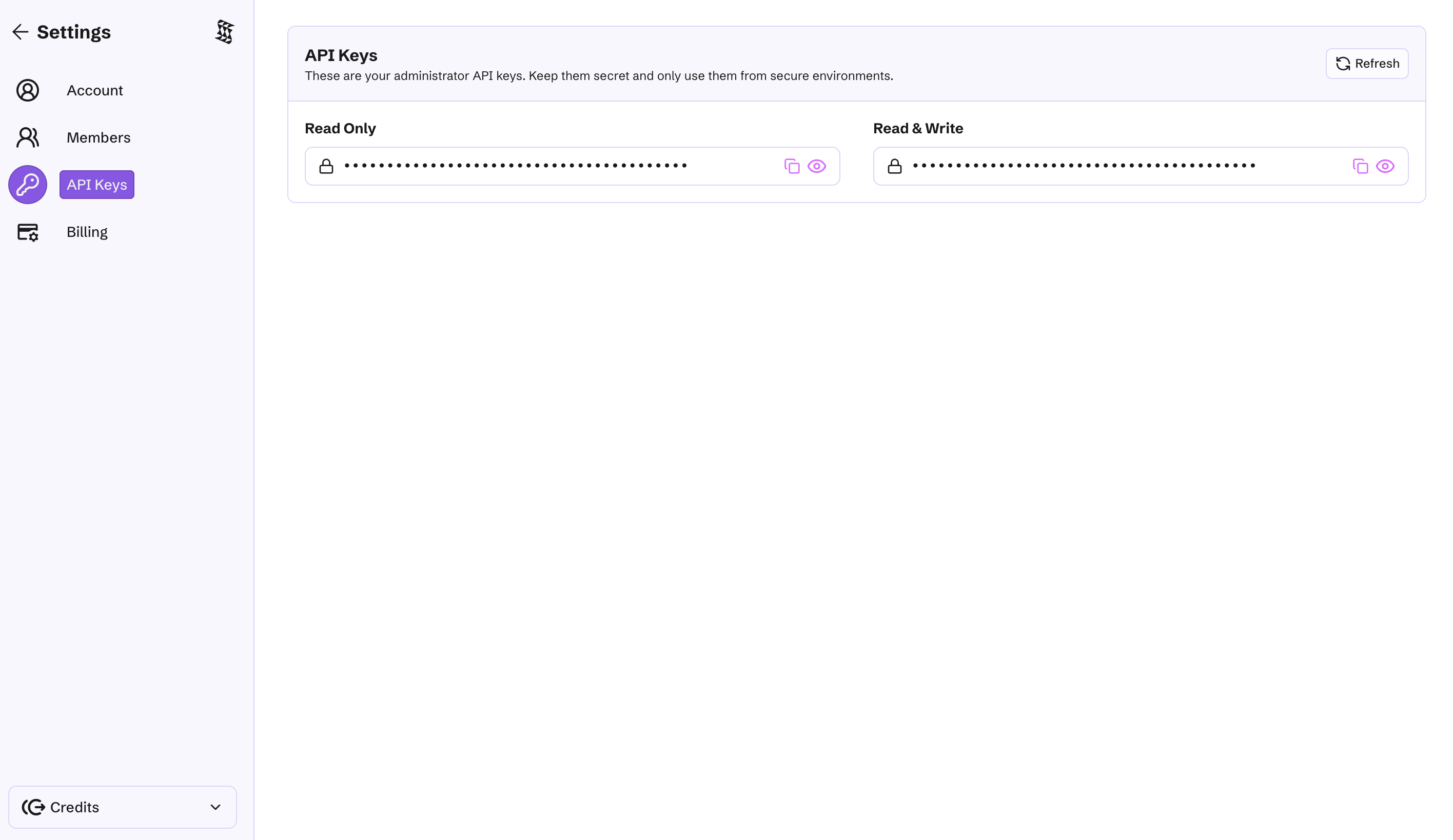 There are two types of API key: read-only and read-write. Your applications should default to using a read-only API key, and only use a read-write key if you absolutely need to.
